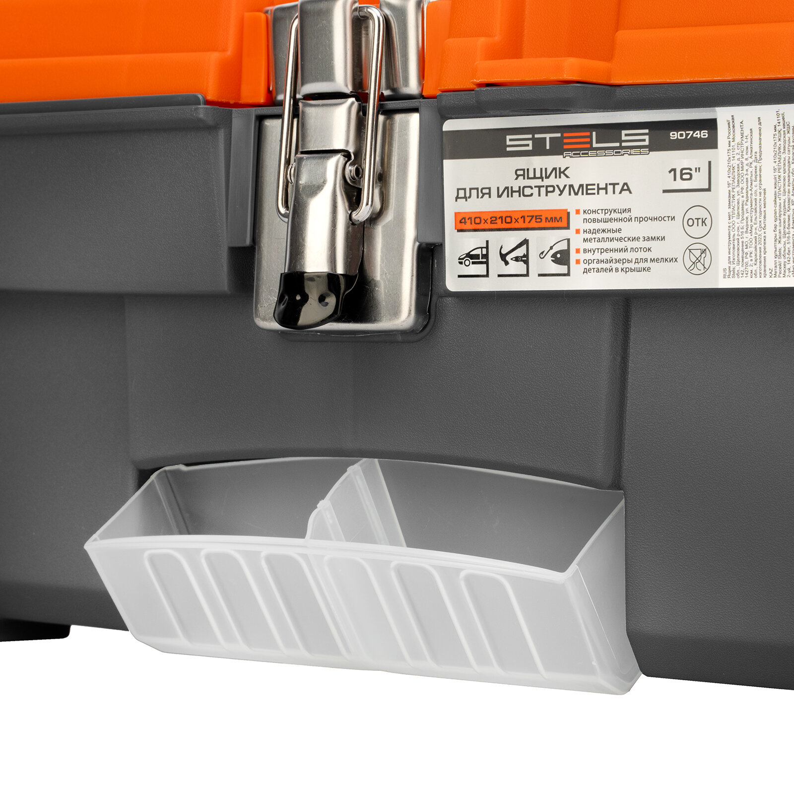 Ящик для инструмента с металлическими замками STELS 16", 410x210x175 мм 90746