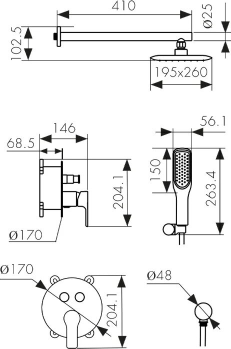 Сохранить66077 KAISER Rios скрытый монтаж с верх.(250х190мм) и нижним душем интересное: