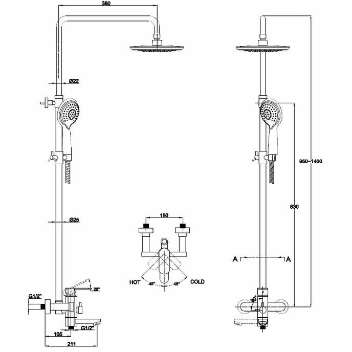 | Дополнительная информация | высота стойки для душа: 1400 мм; диаметр верхнего душа: 200 мм |