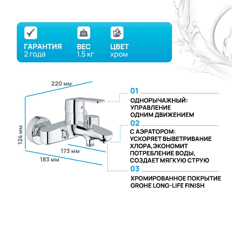 Grohe 33591002 Eurostyle Cosmopolitan Смеситель для ванны, хром