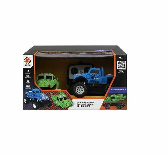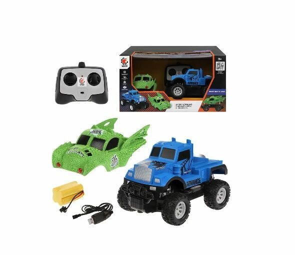 Машина р/у Бигфут 2 в 1, доп.съемный корпус в комплекте, аккум., син, зел.