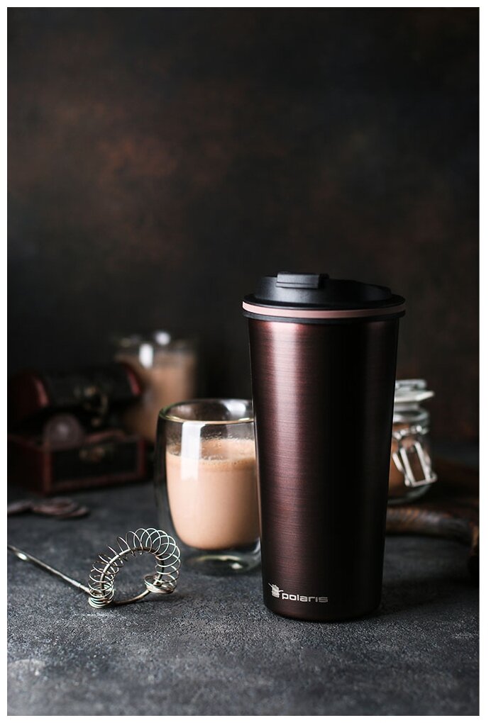 Купить Термокружка Polaris / Поларис Megapolis-500TM с крышкой, нержавеющая сталь коричневый 500мл / большая кружка для чая и кофе / термос