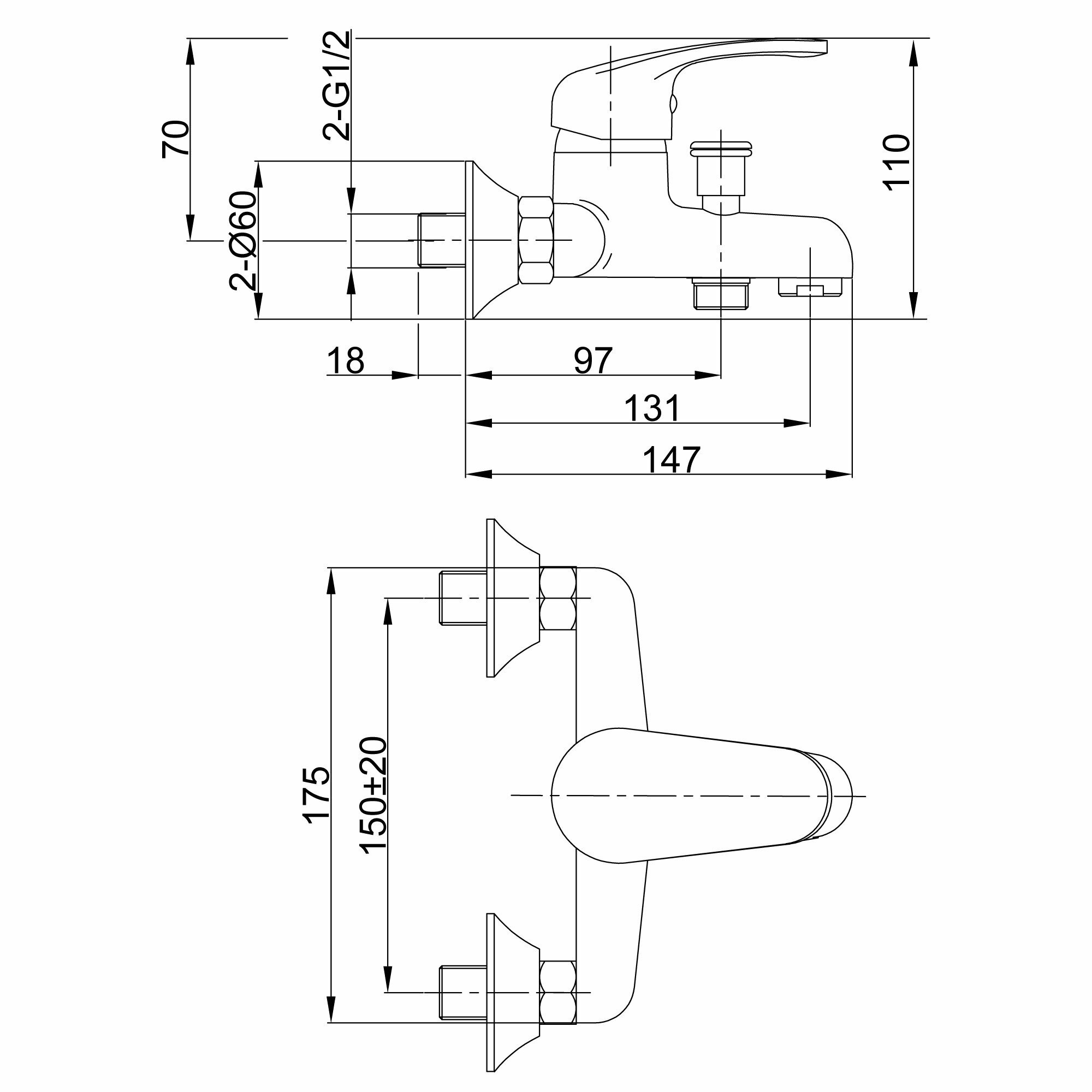 Смеситель ELEANTI Topaz для ванны/душа одноручный, латунь, картридж 35 мм, с коротким изливом 14,5 см, в комплекте