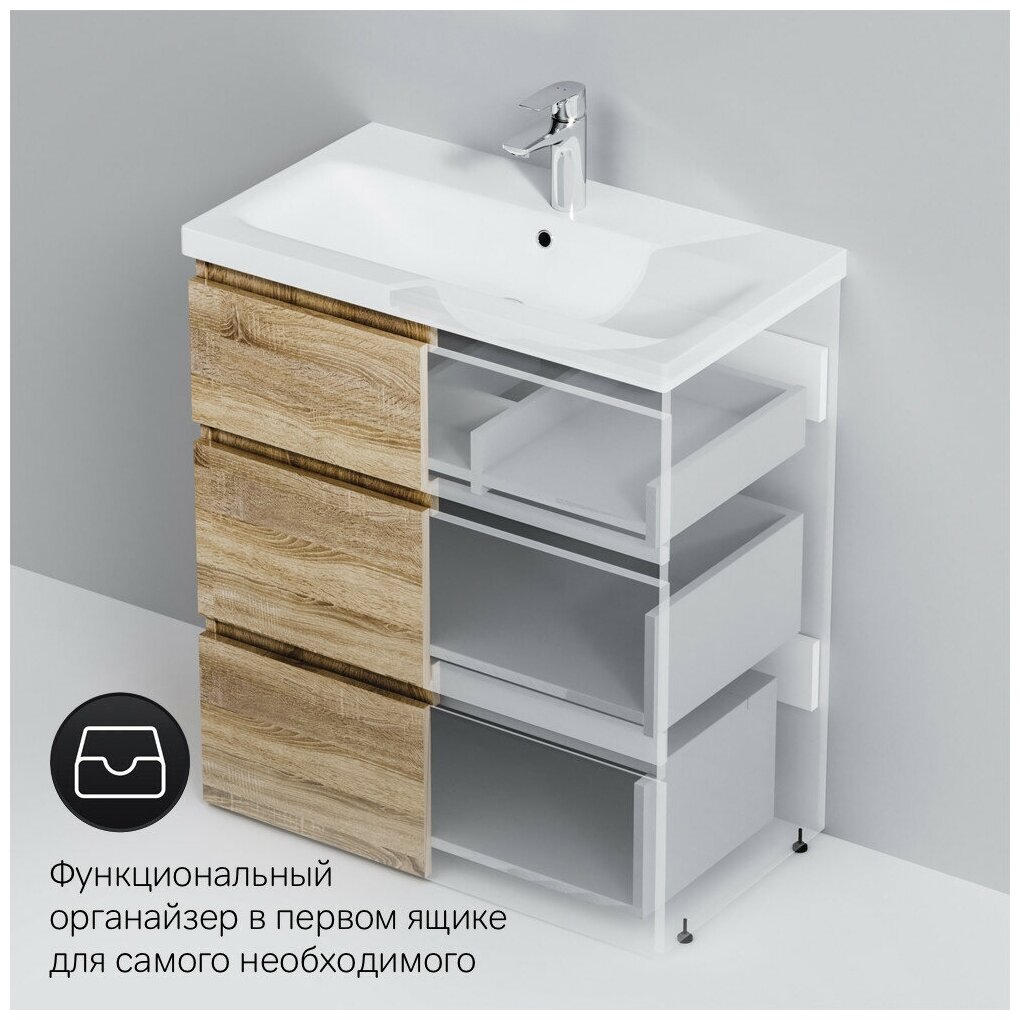 M91FSX0752OF GEM S, База под раковину, напольная, 75 см, 3 ящика, светлый дуб