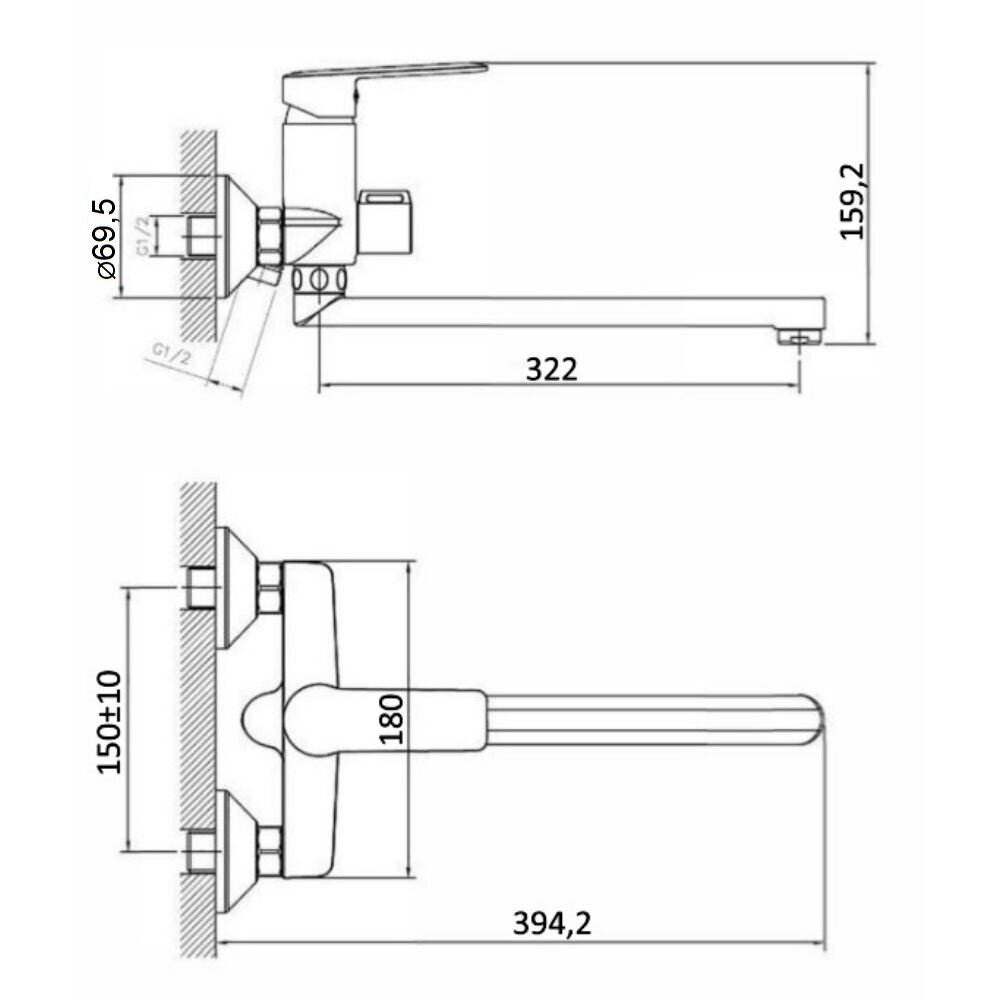 Смеситель для ванны с душем и с длинным изливом Agger Clean A2421100, хром