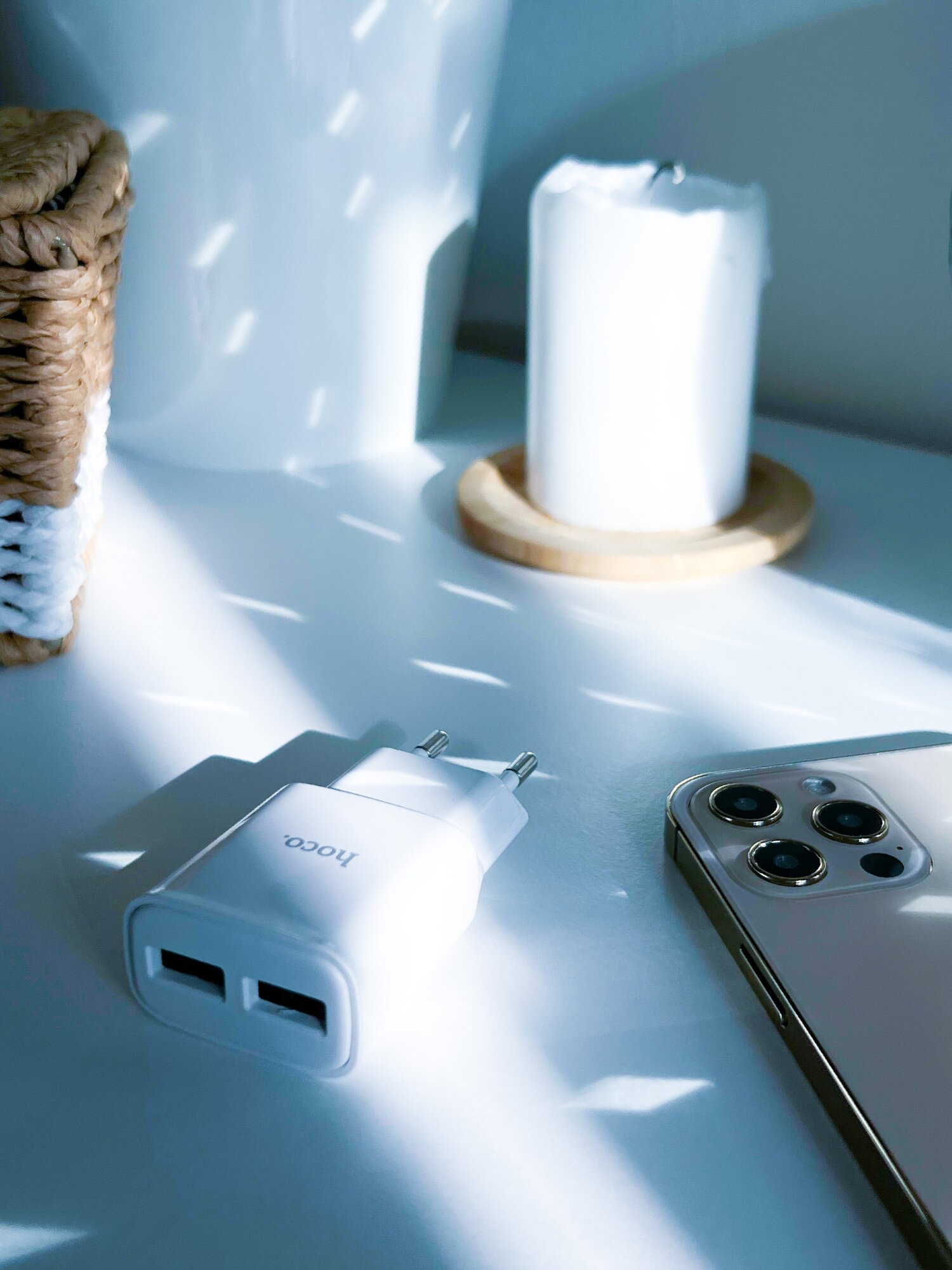 Сетевой адаптер питания Hoco C88A White зарядка 2.4А 2 USB-порта, белый