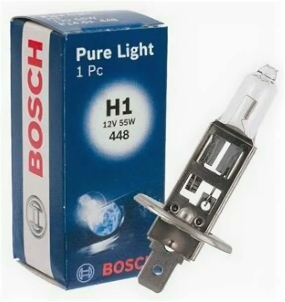 Лампа галогенная Bosch Pure Light H1 (P14.5s, T8), 12В, 55Вт, 3200K, 1 шт