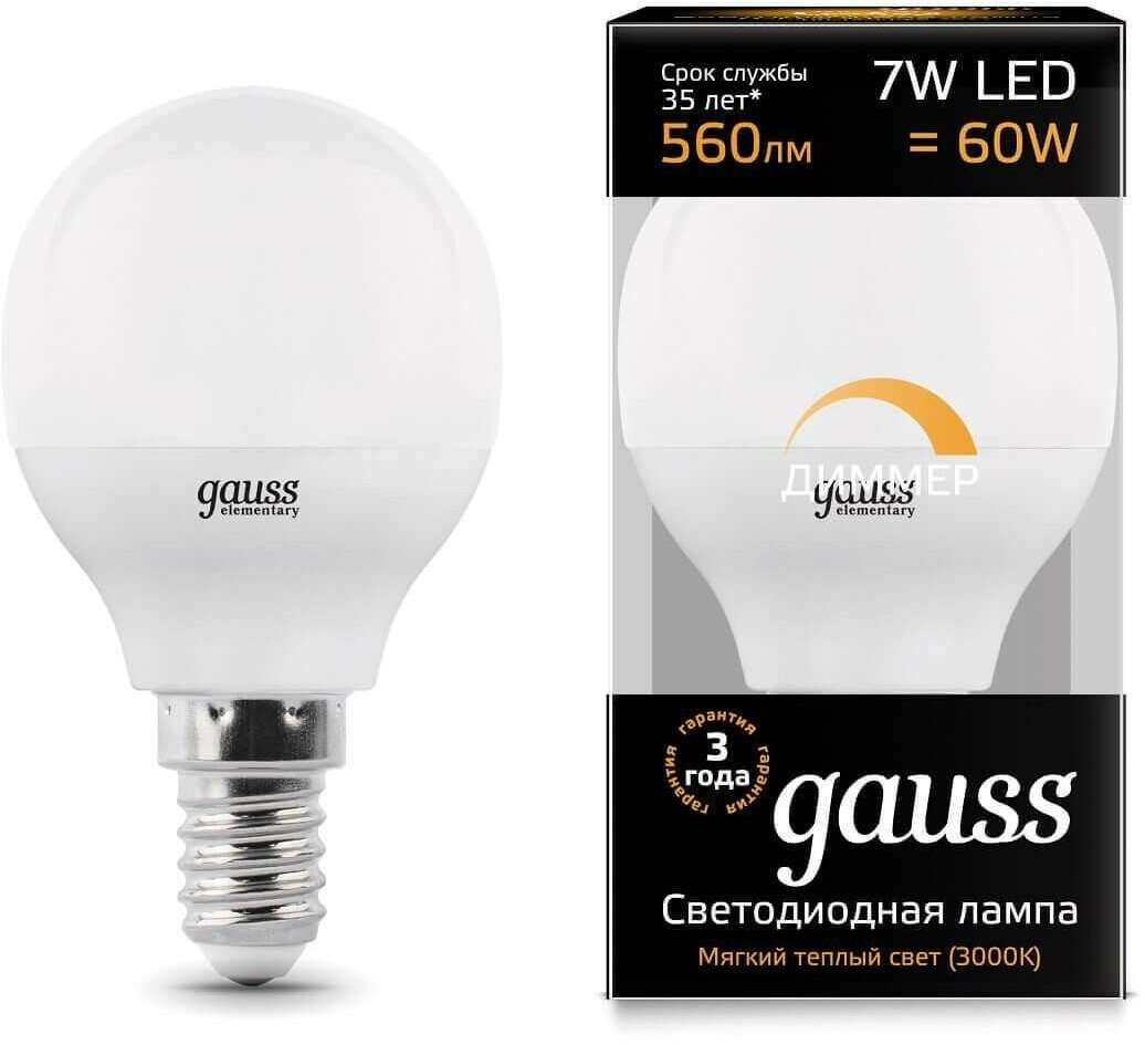 СохранитьЛампа светодиодная GAUSS 7Вт E14 LED 560Лм 3000К диммируемая шар интересное: