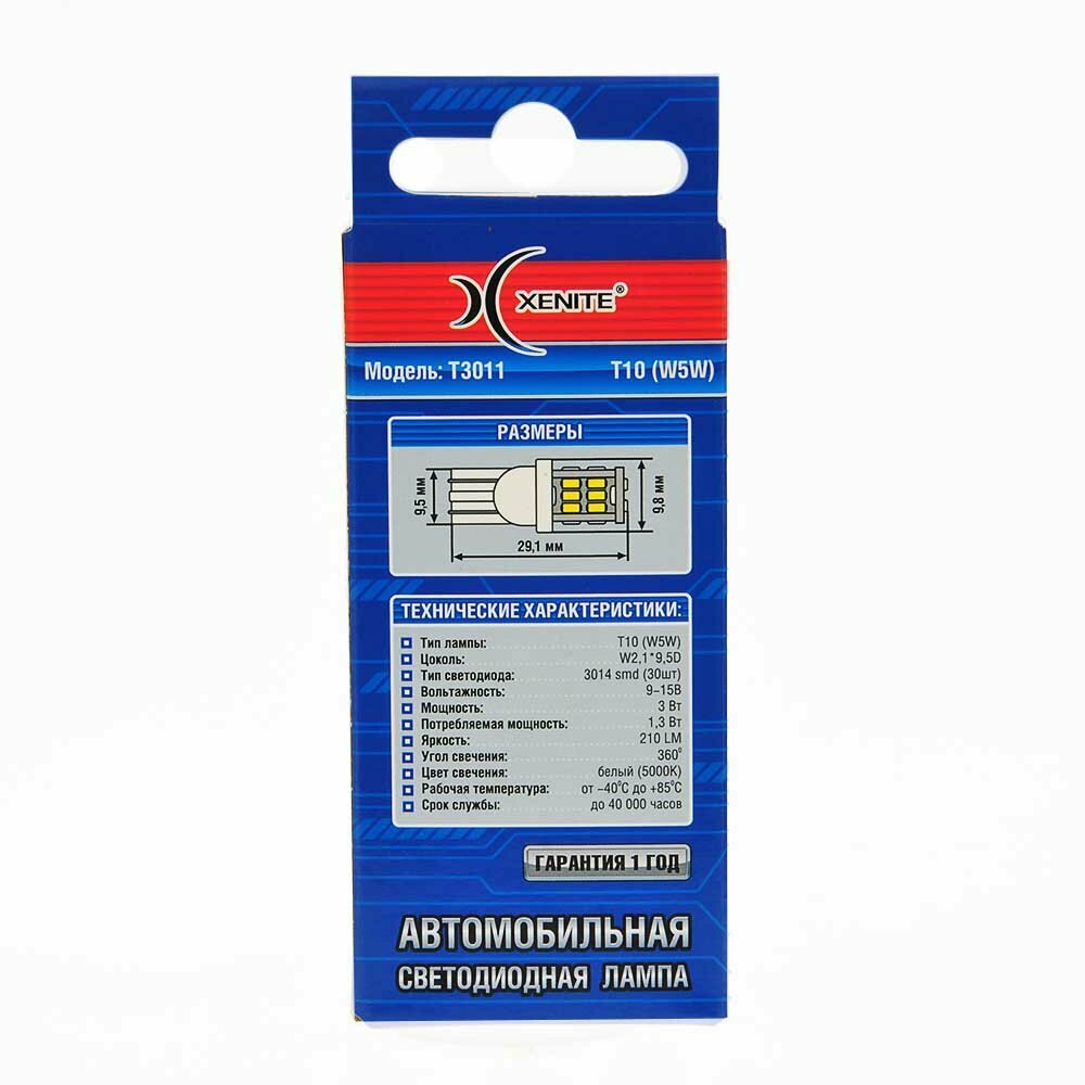 Светодиоды T10 (W5w) Xenite T3011 (Яркость 210 Lm) (Упаковка 2 Шт.) Гарантия 1 Год Xenite арт. 1009419