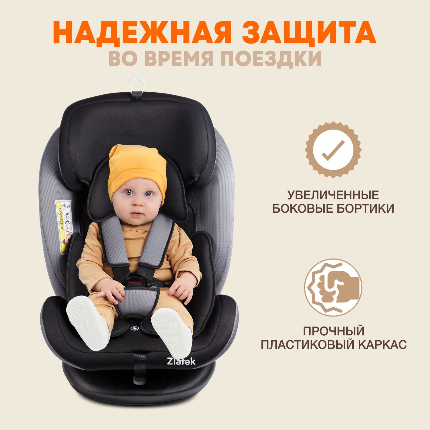 Автокресло детское Zlatek Cruiser Isofix поворотное с рождения до 12 лет / Isofix / 0+/1/2/3/до 36 кг 0-36кг / 0-12лет, серо-черный