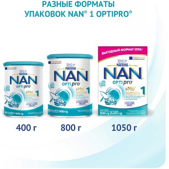 Молочная смесь Nestle NAN 1 OPTIPRO для роста, иммунитета и развития мозга, с рождения, 400 г 2 шт