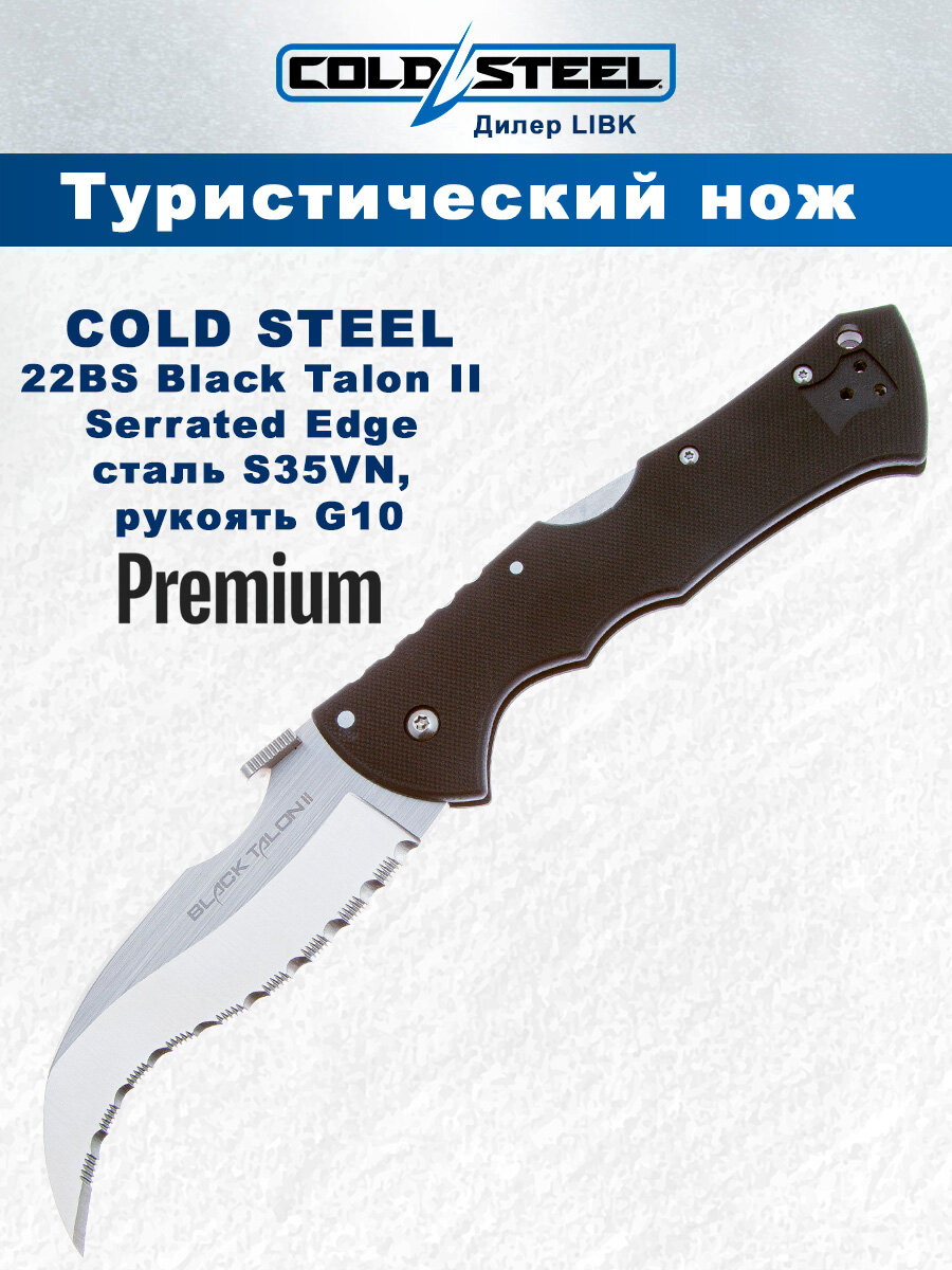Cold Steel Нож Black Talon II Serrated Edge сталь S35VN, рукоять G10 (22BS)