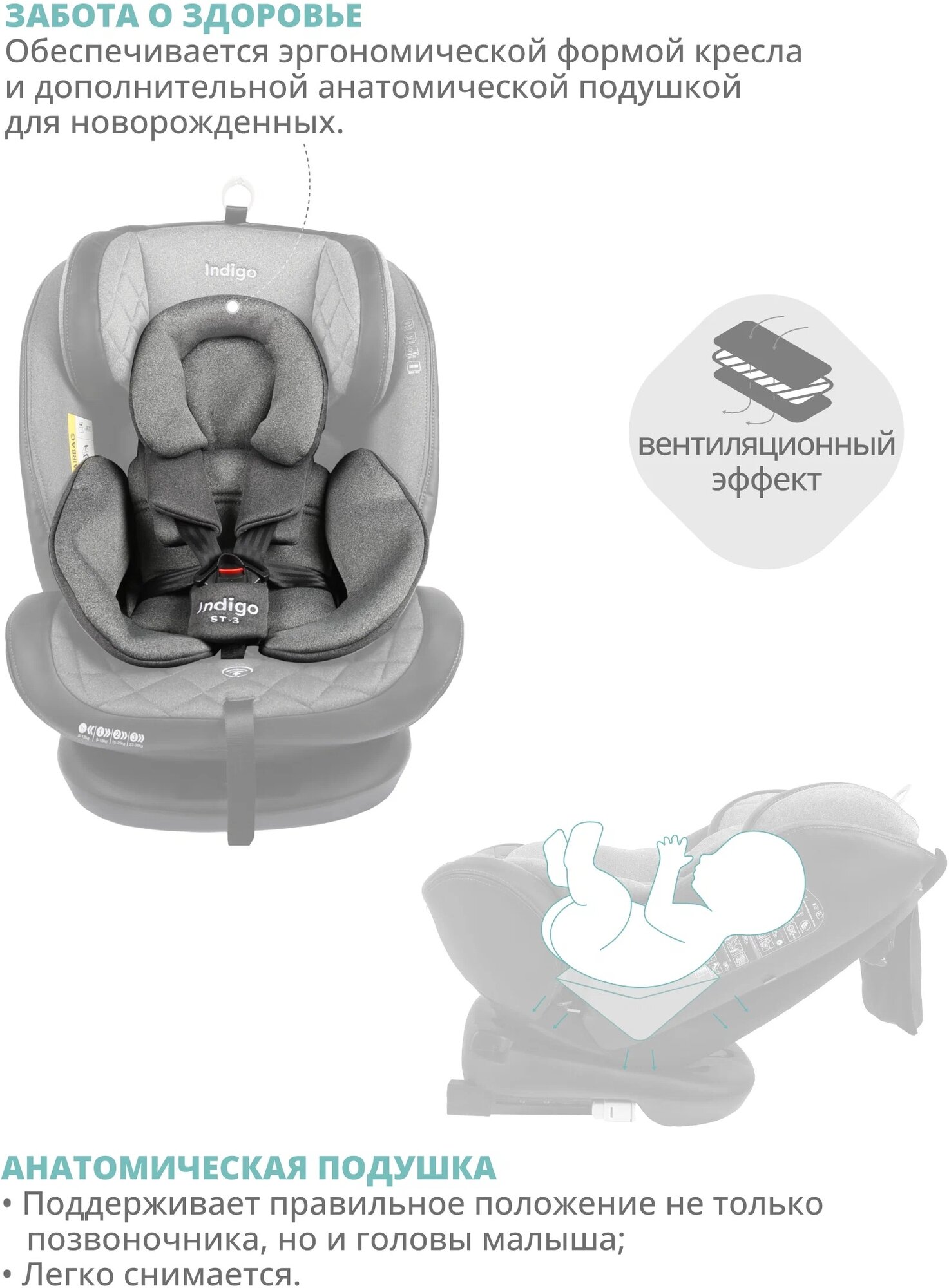 Автокресло Indigo AERO ISOFIX, ST-3, серый