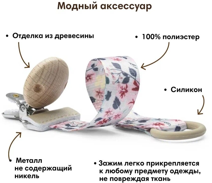 СохранитьКлипса для пустышки Elodie Wood - Floating Flowers интересное: