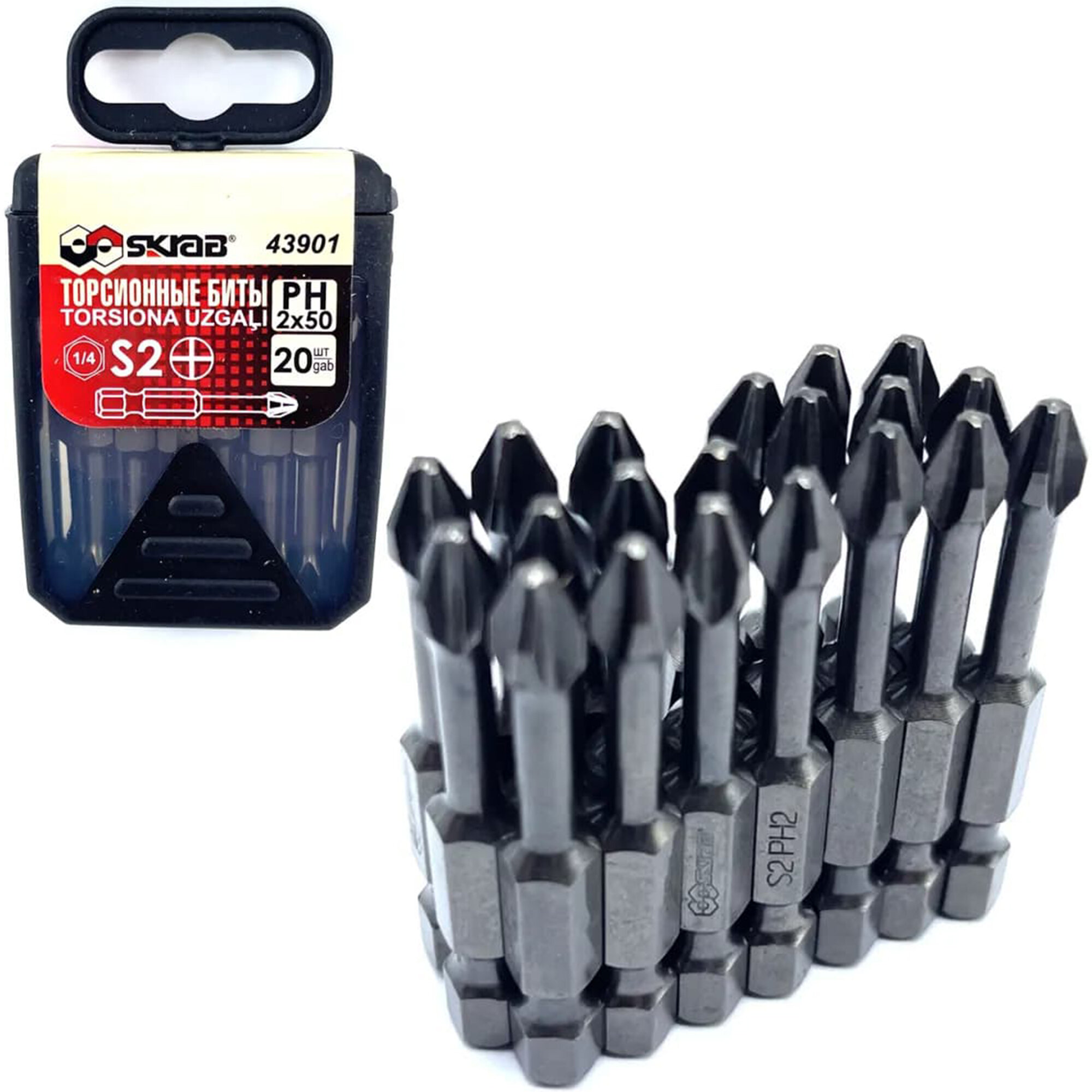 Биты PH 2 х 50мм 20шт. Торсионные Skrab 43901