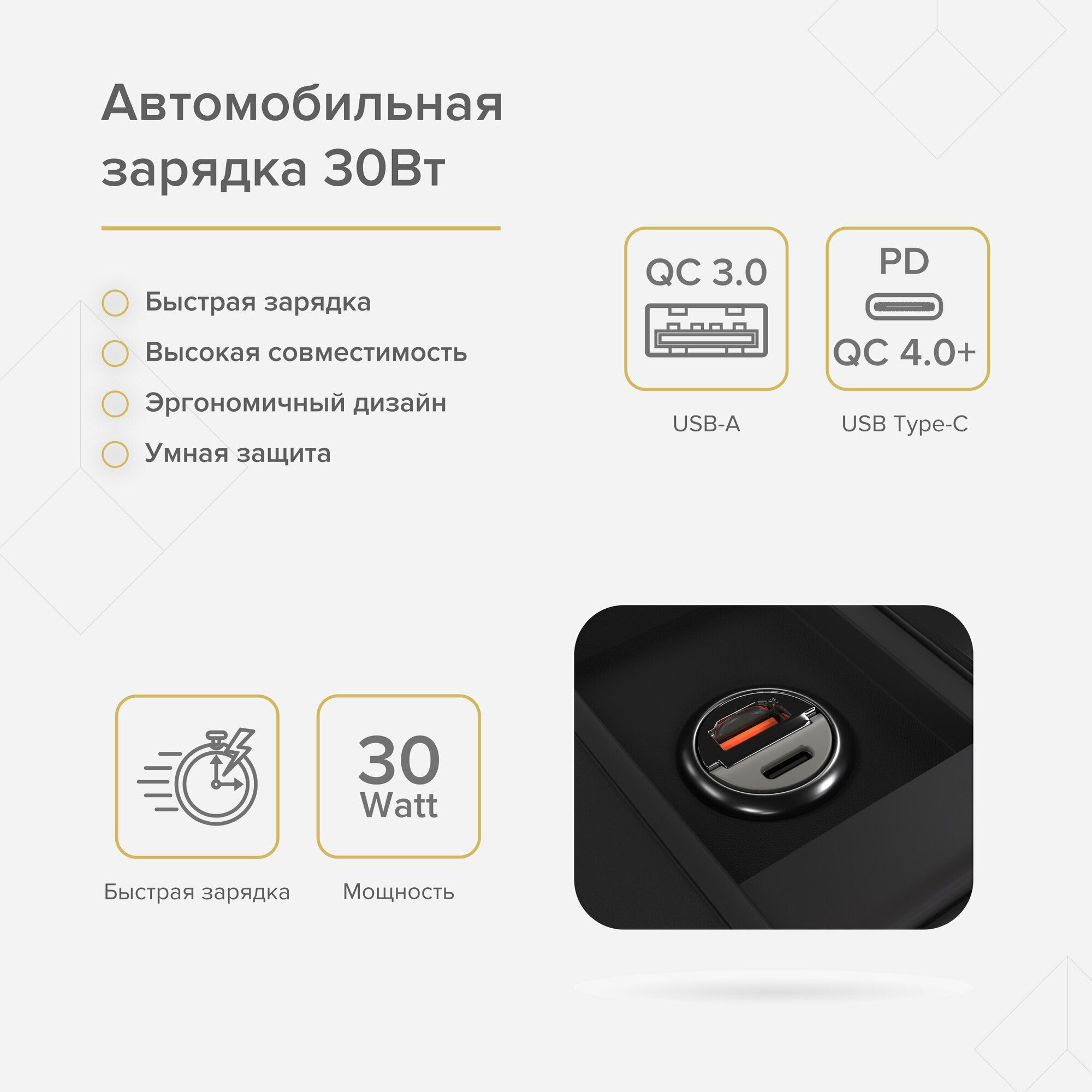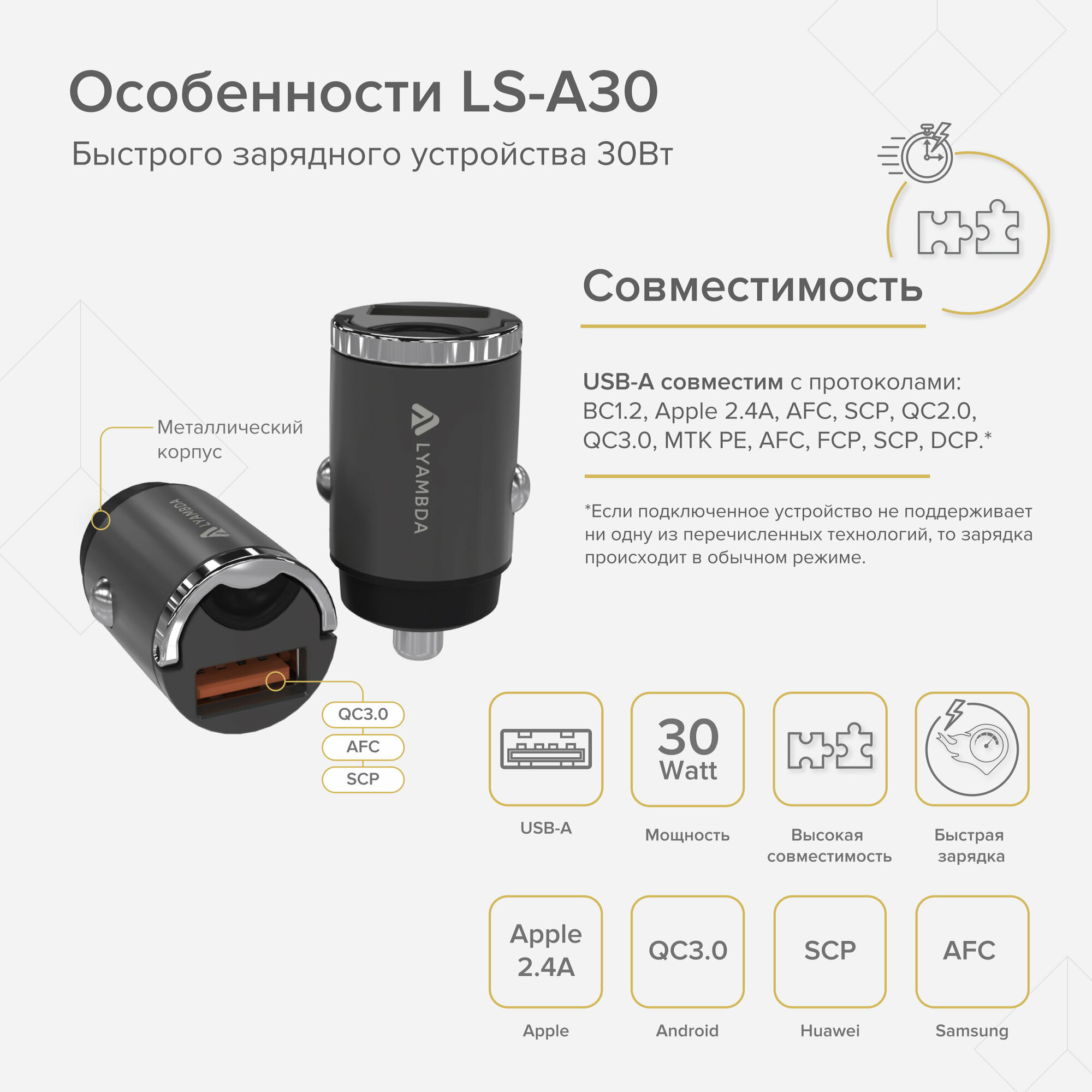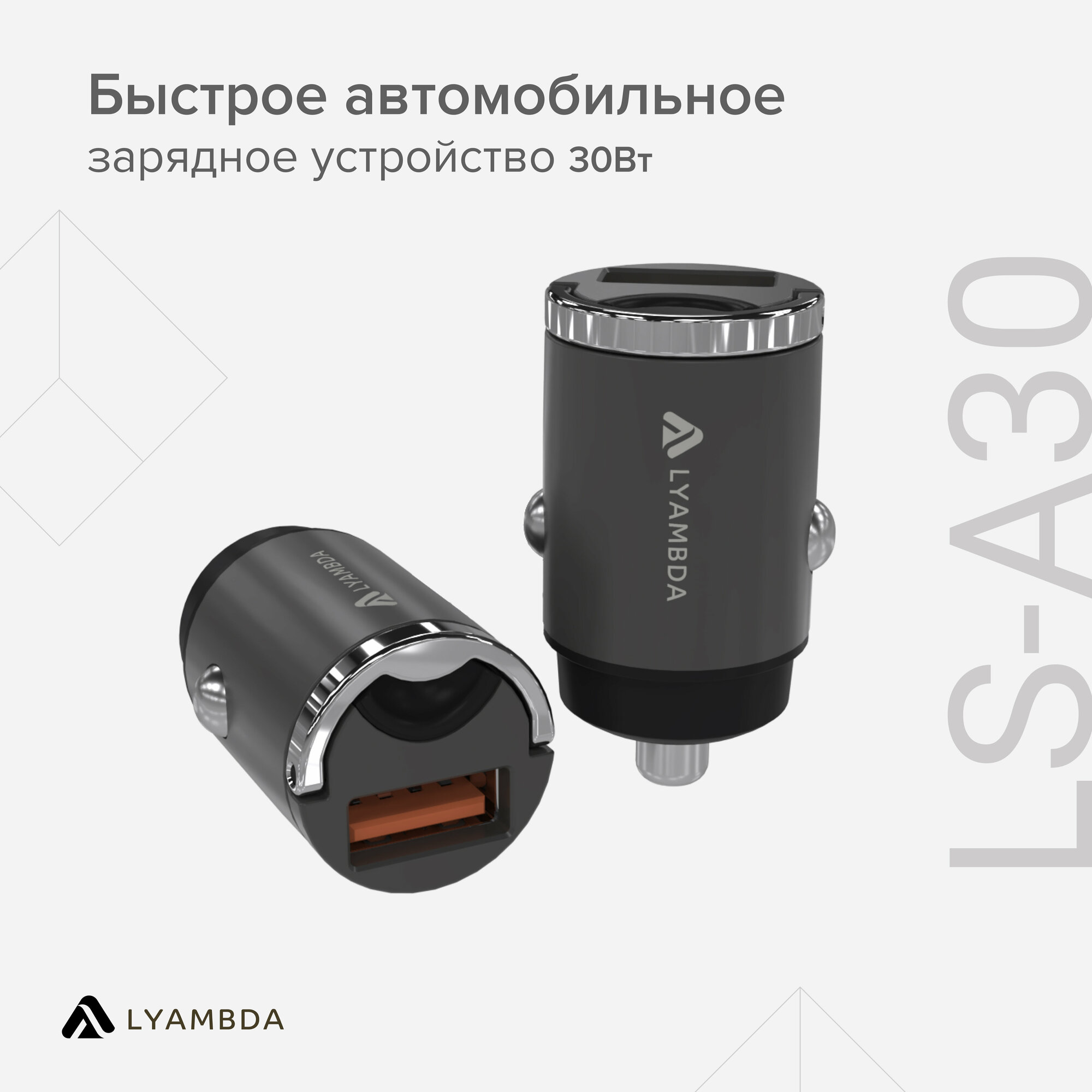 Автомобильное зарядное устройство LYAMBDA 30Вт USB-A (QC3.0) Aluminum LS-A30 Серый интересное: