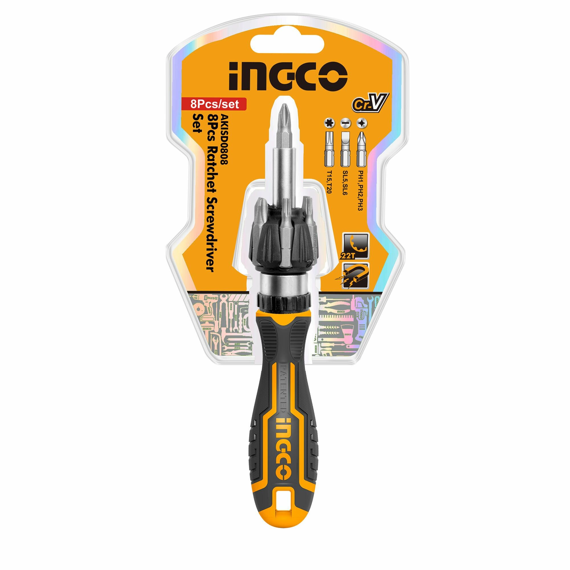 Отвёртка с набором бит Ingco INDUSTRIAL AKISD0808