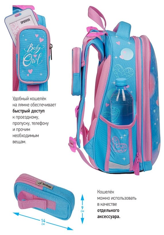 Ранец Berlingo Expert "Plush Owl" RU06104, 37*28*16 см, 2 отделения, 2 кармана, голубой, розовый