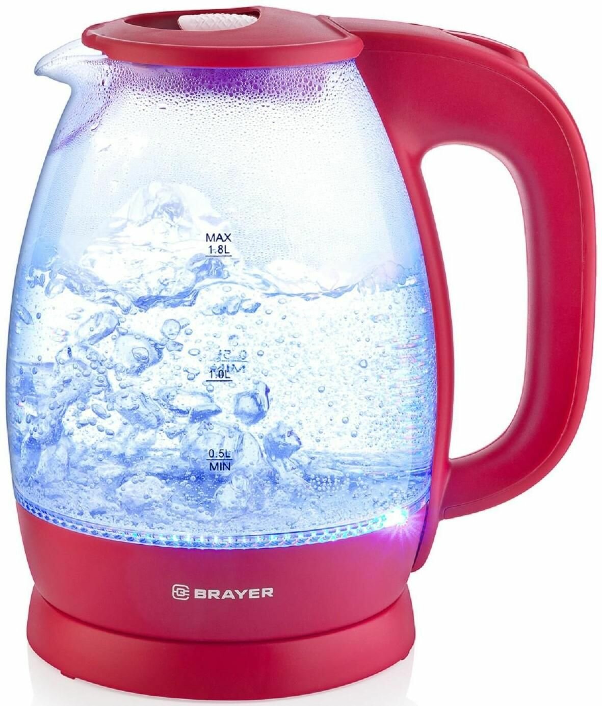 Чайник Электрический 1.8Л 2200ВТ Диск Стекло Внутр Подсв Красн Brayer Br1045rd