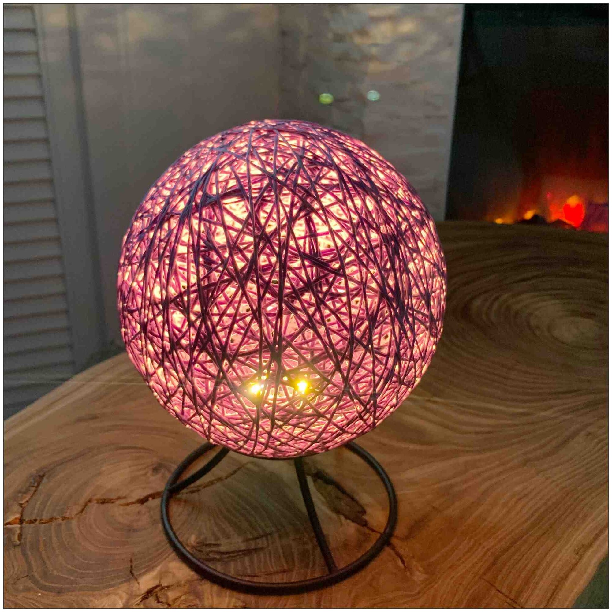СохранитьРотанговый светодиодный ночник-лампа в виде шара с плетенным абажуром с теплым свечением, фиолетовый интересное: