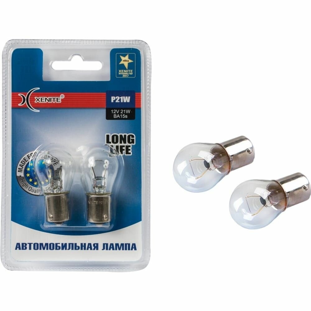 XENITE 1007112 Лампа накаливания сигнальная P21W BA15s 3200K Long Life 12V 21W Блистер 2 шт