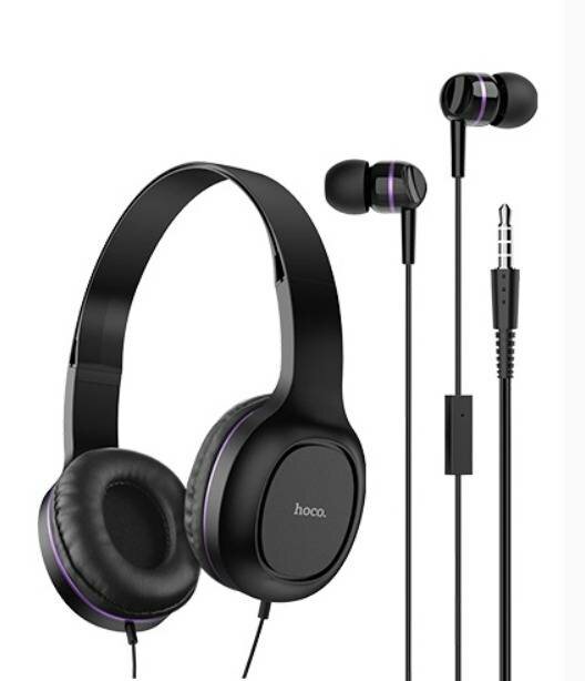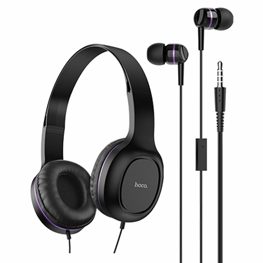 Комплект наушников Hoco W24, проводные, накладные + вакуумные, проводные, фиолетовые