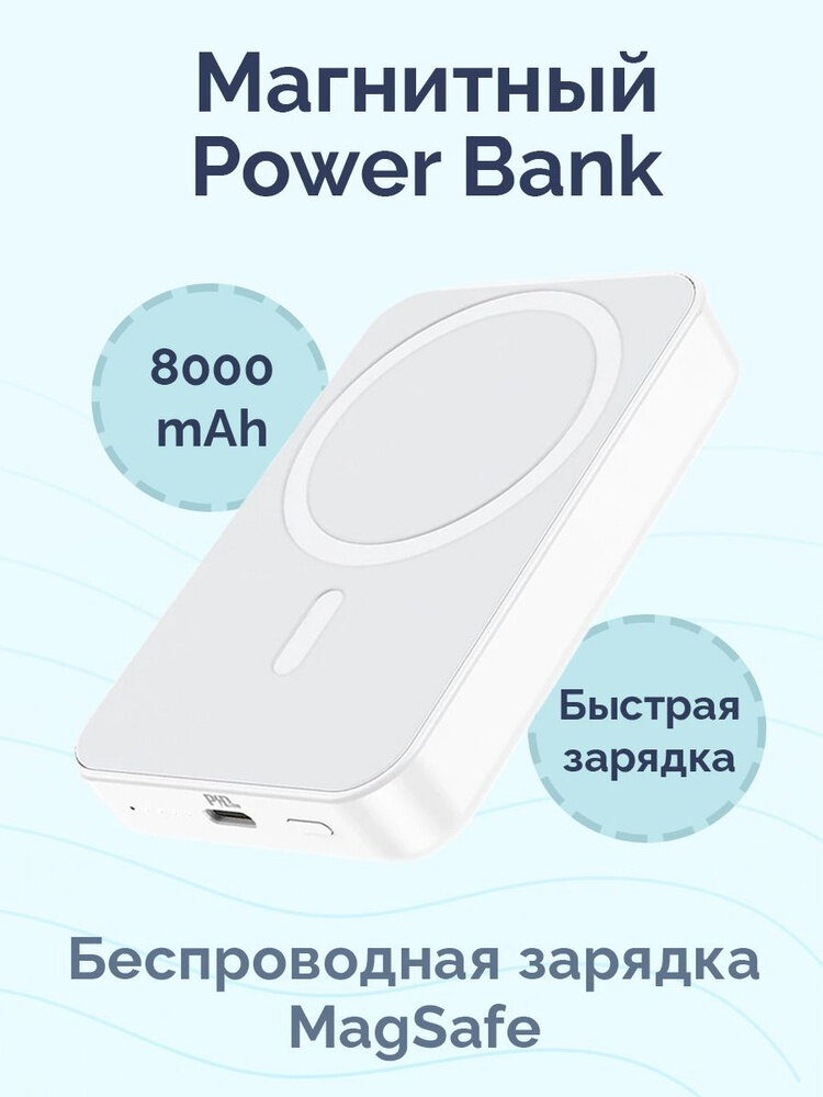Аккумулятор магсейф с беспроводной зарядкой 15W BOROFONE BJ25 8000 mAh выход Type-С MagSafe быстрая зарядка PD20W белый IPhone