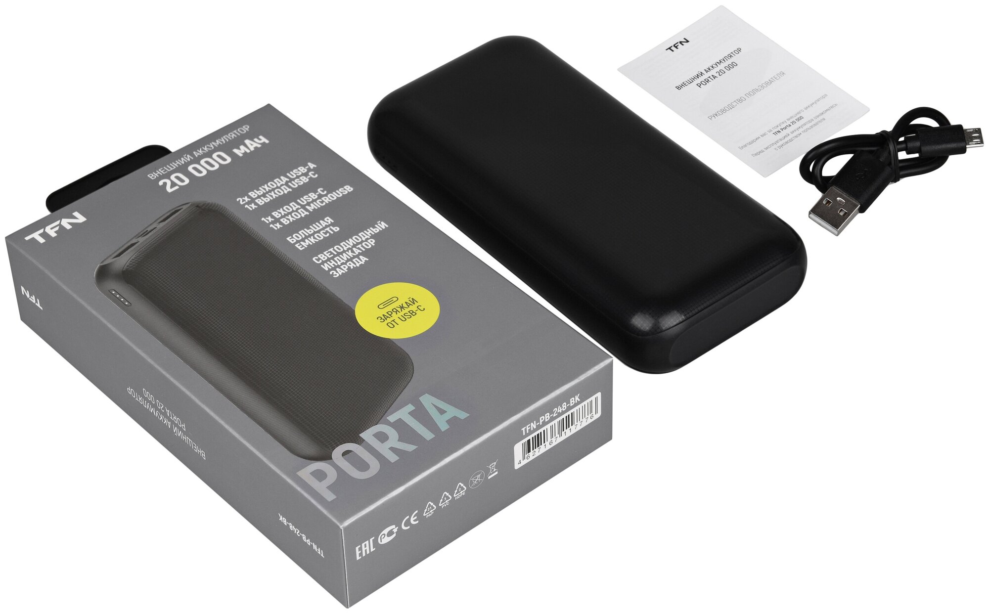 Внешний аккумулятор TFN на 20.000 мач, Porta 20, цвет: черный (TFN,TFN-PB -248-BK)