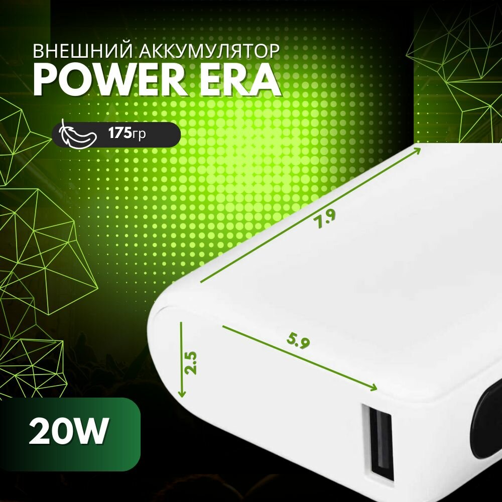 Внешний аккумулятор Power Era 10 PD, USB-A, USB-C, 10000 мАч,быстрая зарядка, белый