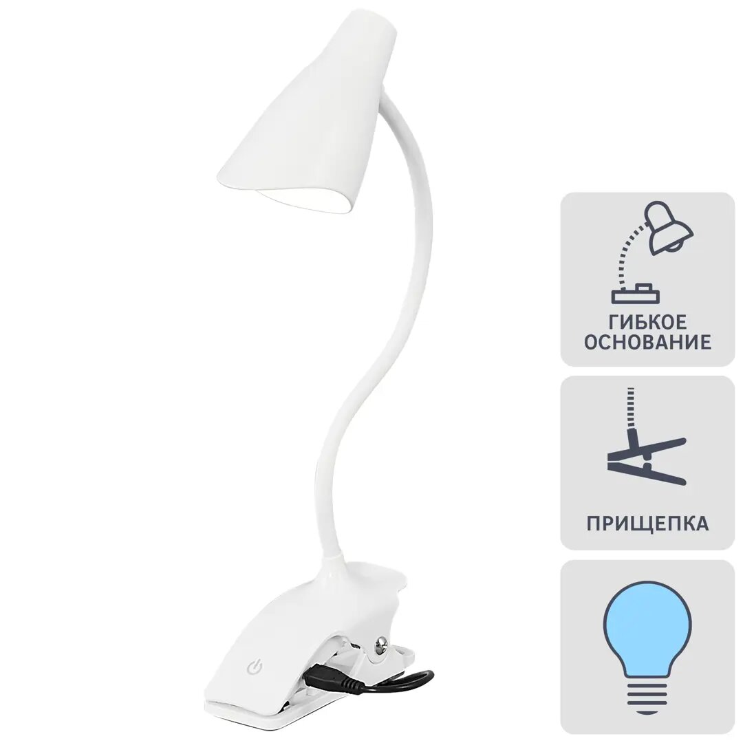 Рабочая лампа настольная на прищепке светодиодная TLD-560, цвет белый