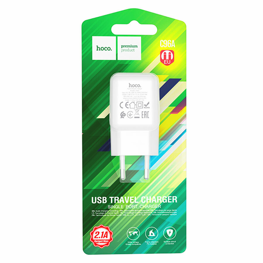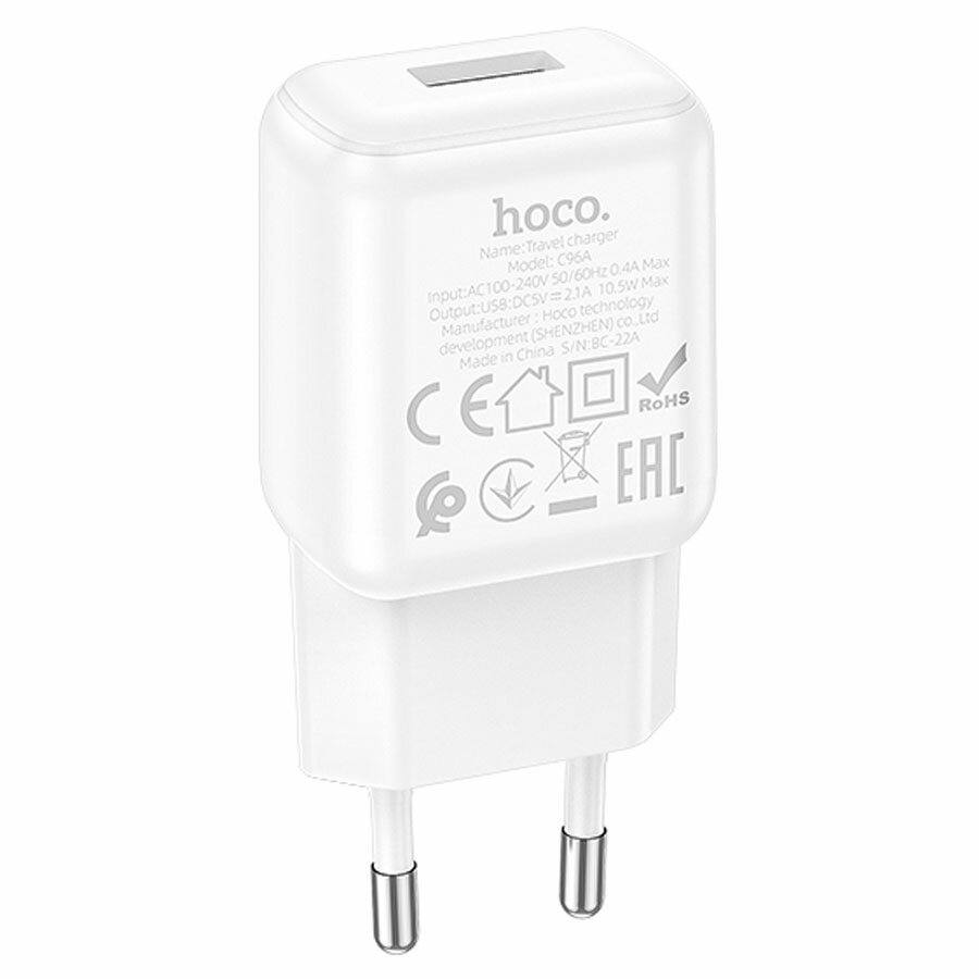 Сетевое зарядное устройство c USB HOCO C96A, белое, max 2.1A