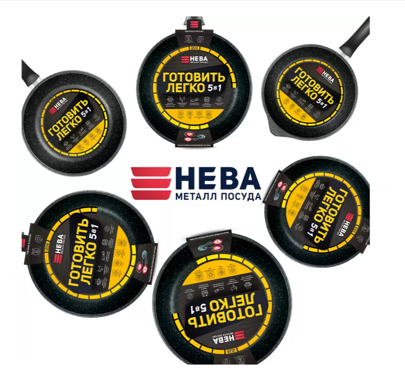 Сковорода 26 см Нева Металл Посуда "Готовить легко", с антипригарным покрытием, черная