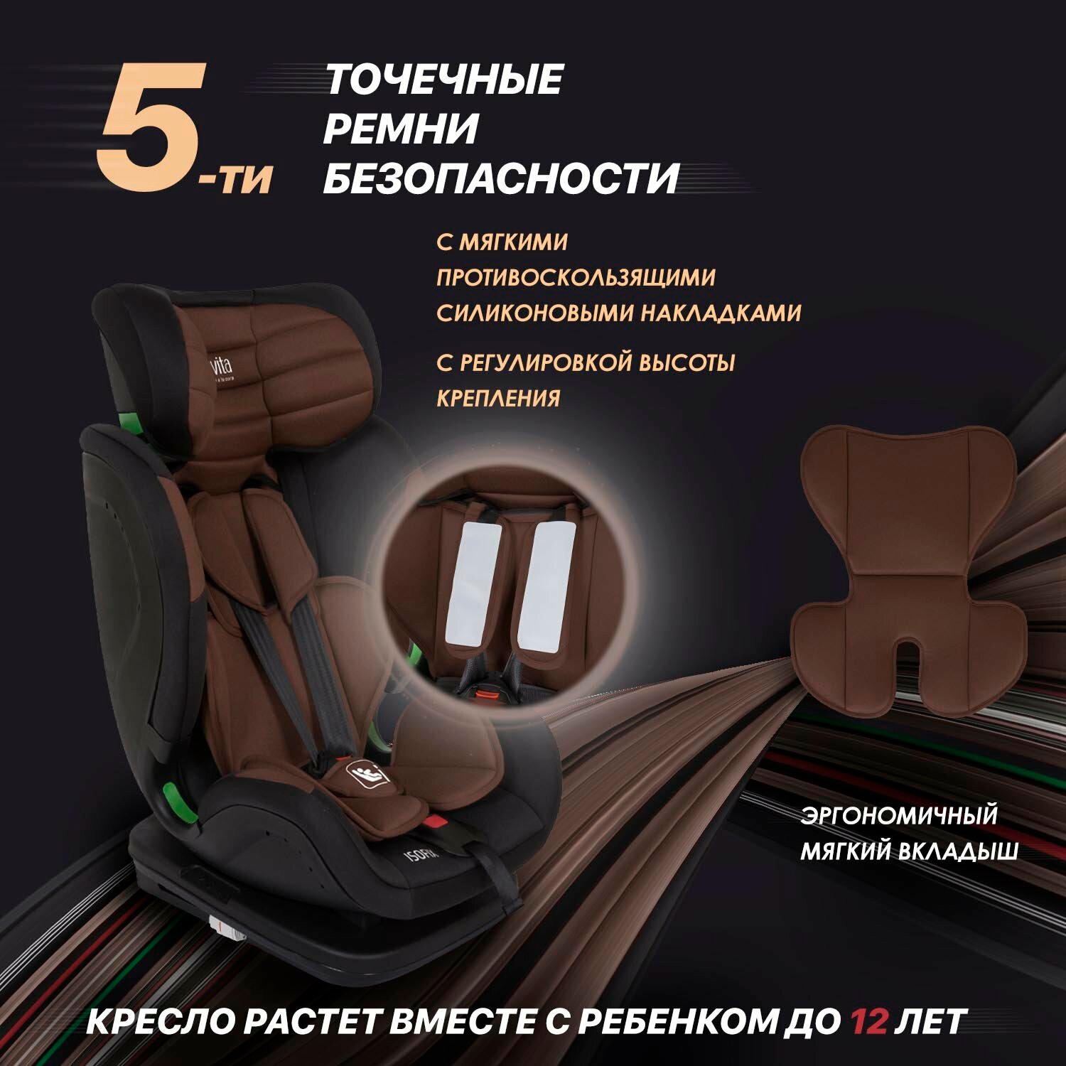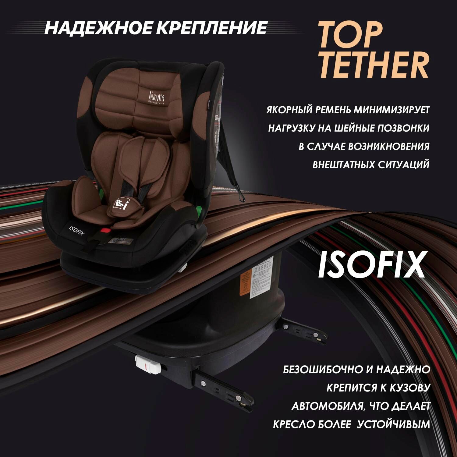 Купить Автокресло детское с креплением ISOFIX Nuovita Maczione NiS3-1, группа 1/2/3, от 9 месяцев до 12 лет (Cioccolato/Шоколад)