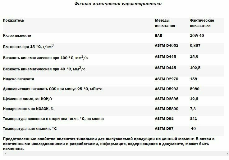 | Класс вязкости SAE | 10W-40 |