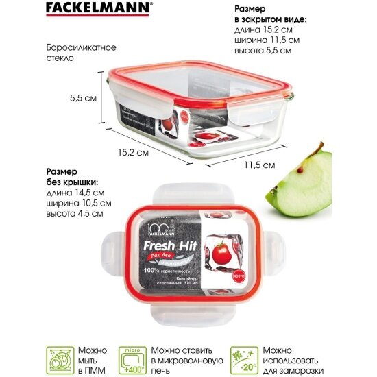FACKELMANN Контейнер пищевой стеклянный (+400гр.C) с крышкой Fresh Hit, 370мл, 100% герметичный