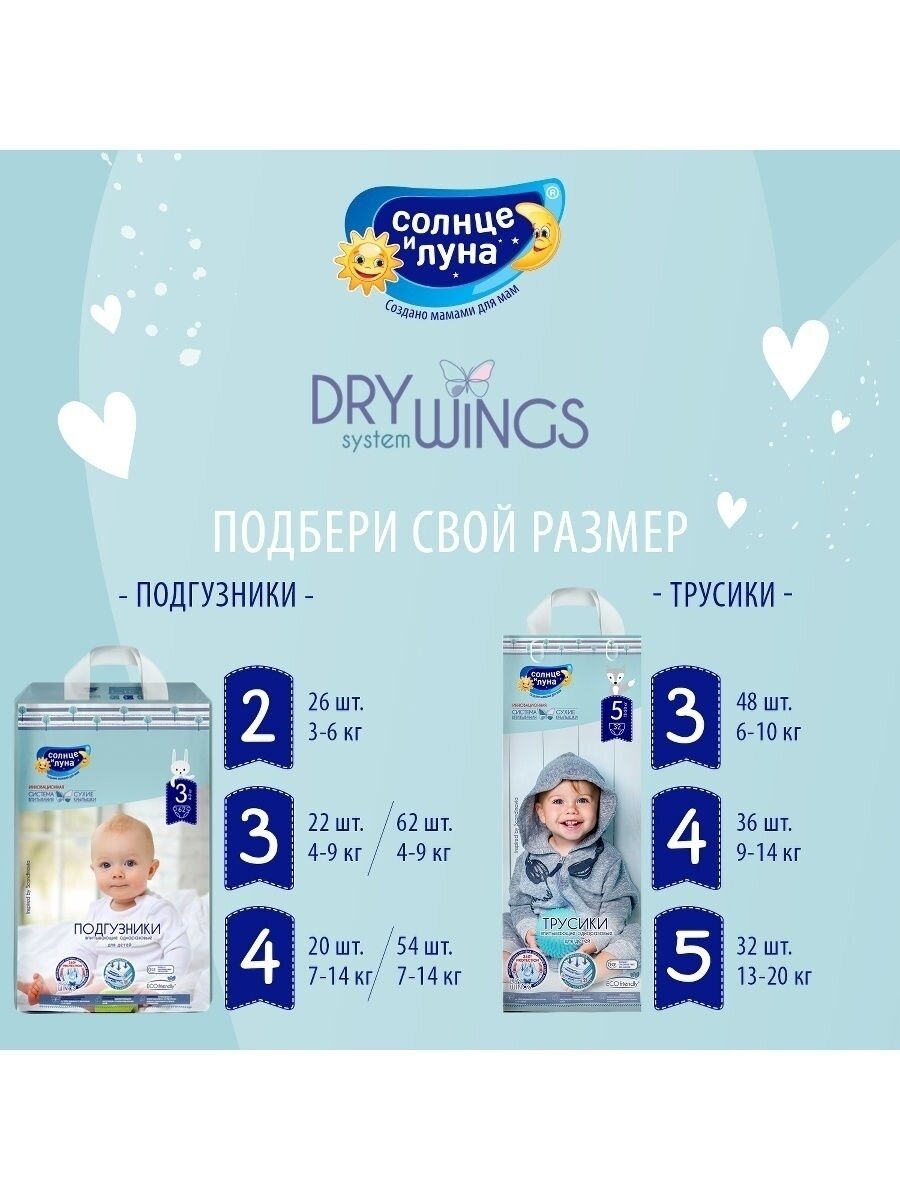 Подгузники Солнце и Луна Dry wings mega-pack 3/M (4-9 кг) 58+4 шт. интересное:
