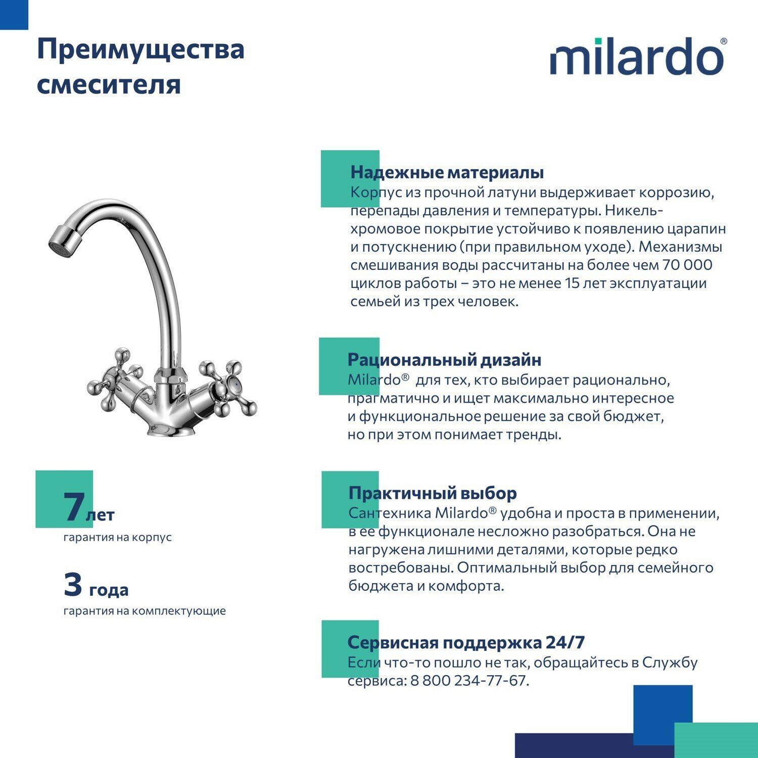 | Дополнительная информация | термоизоляция ручек, керамические кран-буксы с углом поворота 180 градусов |