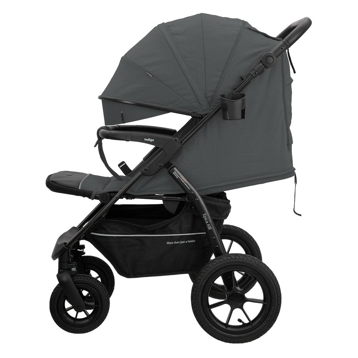 Купить Коляска прогулочная детская Indigo EPICA XL с большими колесами всесезонная складная, темно-серая