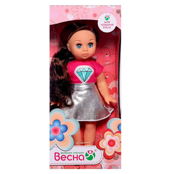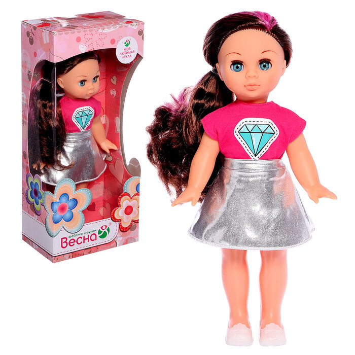 | Комплектация | кукла в одежде (трикотажная футболка с коротким рукавом и наклейкой «кристалл», серебристая расклешённая юбка из парчового трикотажа) туфельки |