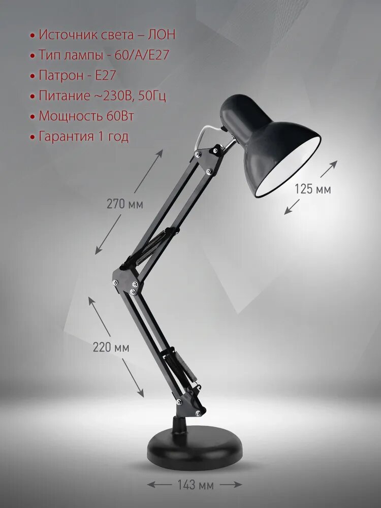 Светильник настольный ULTRAFLASH UF-313 С02 черный (Светильник настольный,230V 60W) интересное: