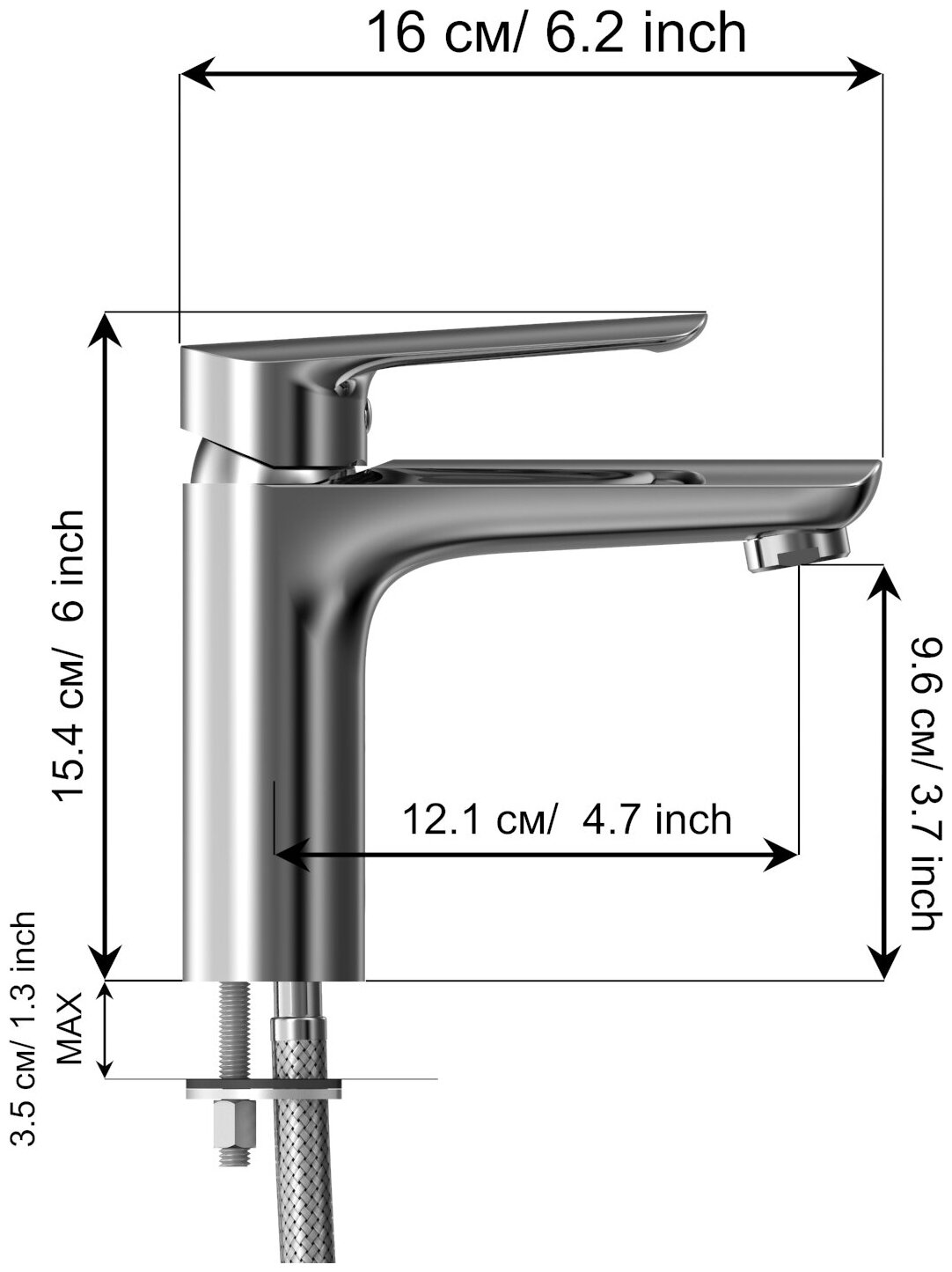 | Комплектация | гибкая подводка 1/2" 35 см, комплект крепления |