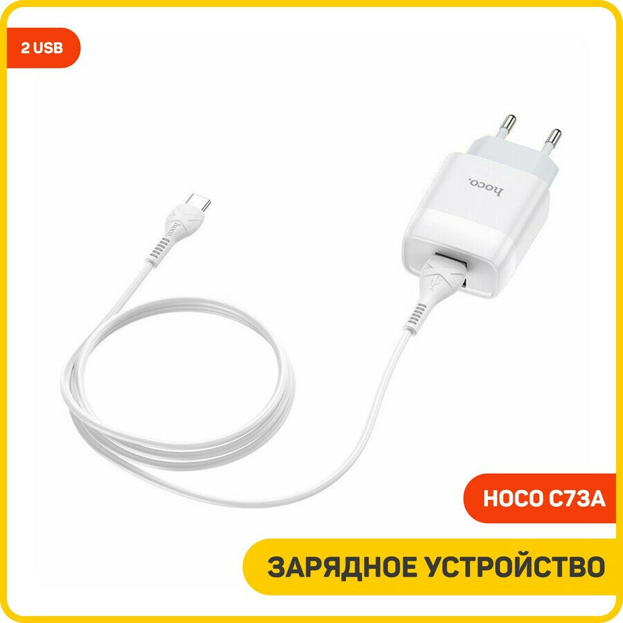 Сетевое зарядное устройство (СЗУ) Hoco C73A (2 USB) + кабель Type-C, 2.4 А, белый