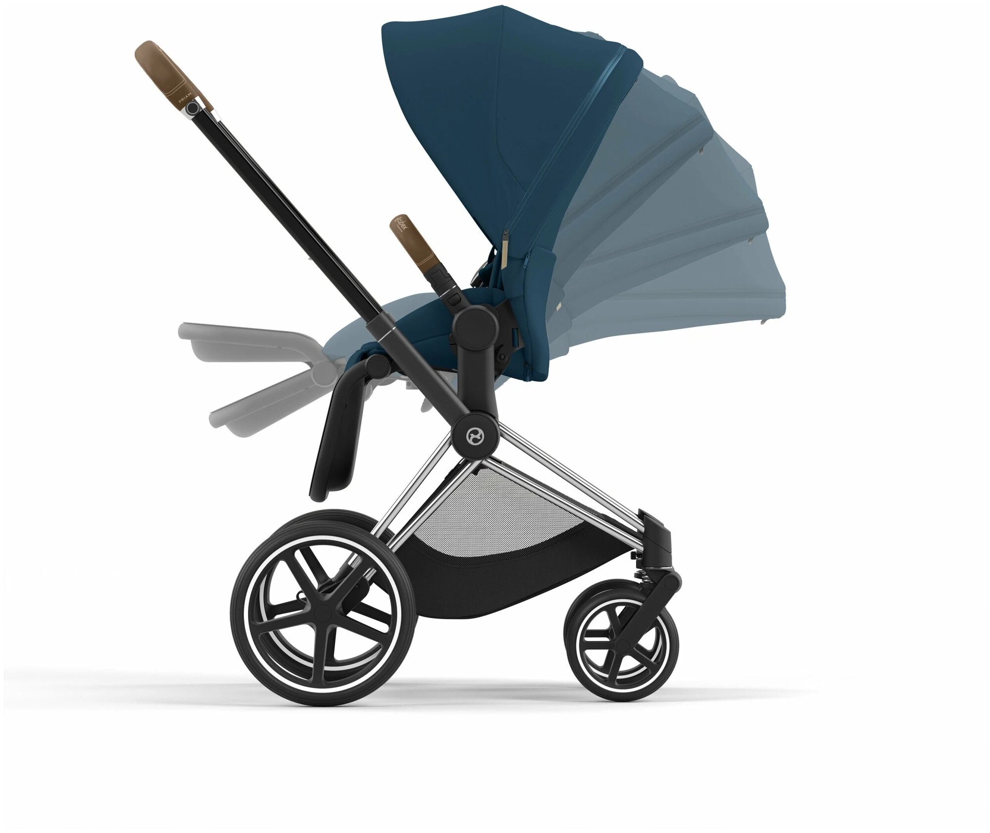 Cybex Priam IV Коляска 2 в 1, шасси IV Chrome ручка Brown/текстиль Mountain Blue