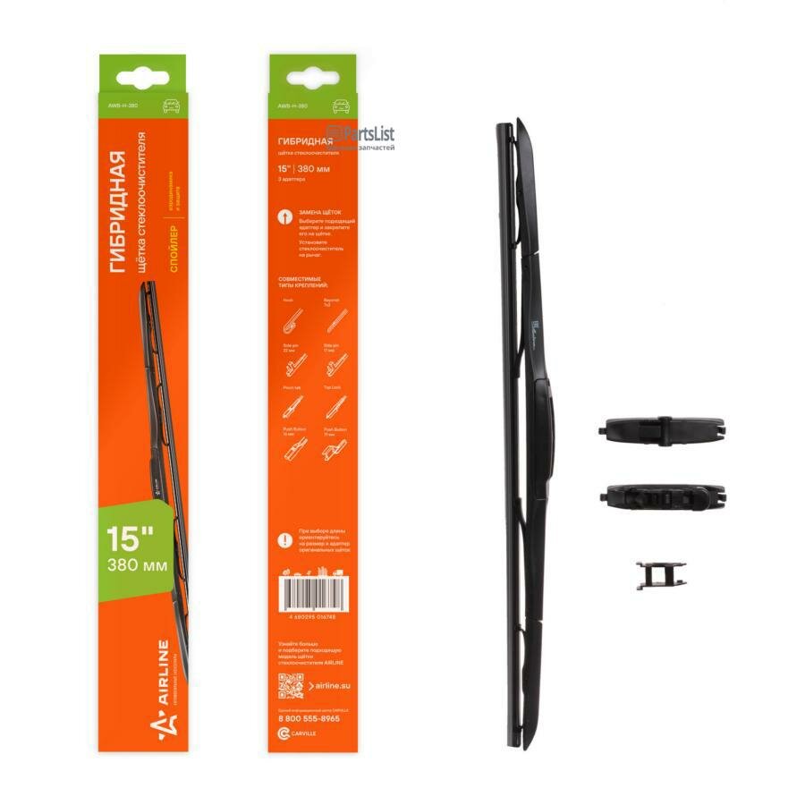 AWBH380 AIRLINE Щетка стеклоочистителя гибрид 380мм (15) 3 адаптера (AWB-H-380)