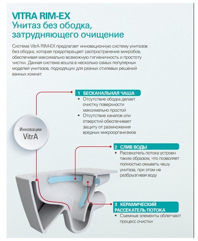 Унитаз пристенный Vitra Sento Rim-ex с сиденьем дюропласт арт.9830В003-7203