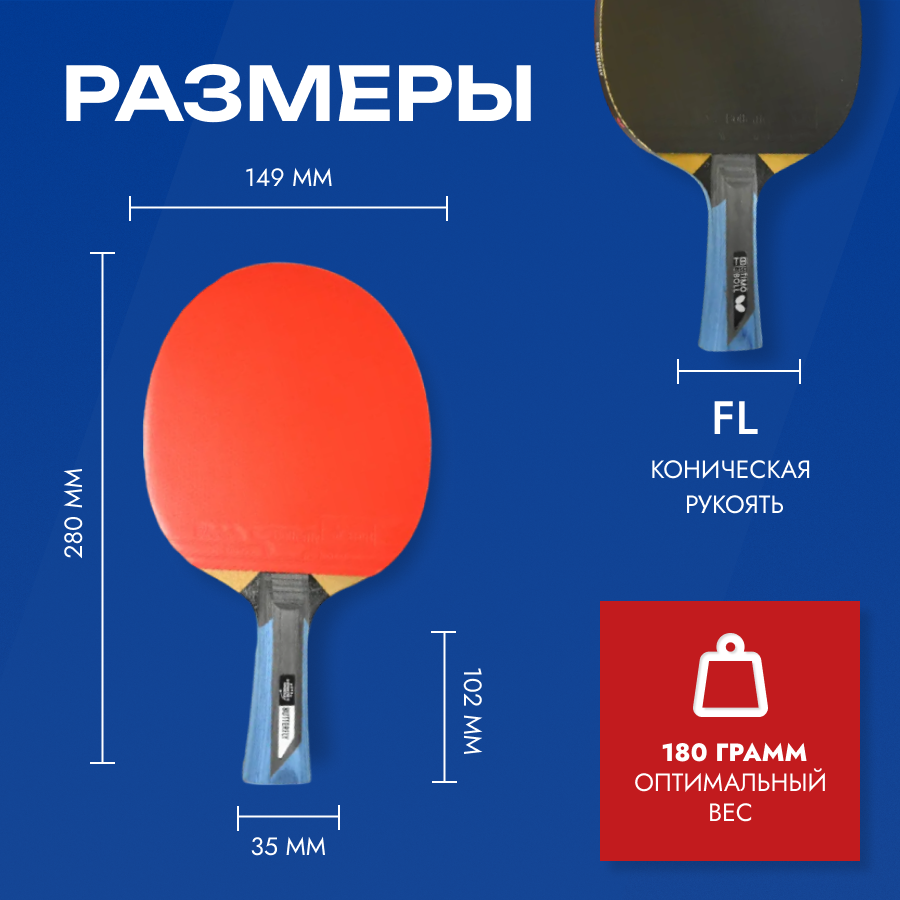 | Минусы: | Странное поведение мяча при контакте ближе к раю ракетки |