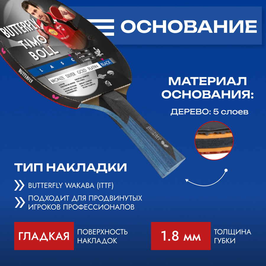 Ракетка для настольного тенниса Butterfly Timo Boll Black 85031S, CV интересное: