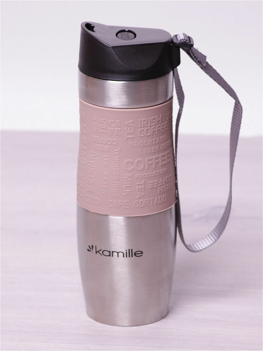 Купить Термокружка Kamille с TPR-вставкой и ремешком (бежевая) 480 мл (2051)