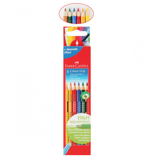 Набор цветных карандашей Faber-castell "Colour Grip" с акварельным эффектом,6 цветов, в картонной коробке