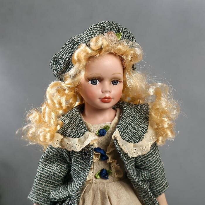 Gianni Rodari Кукла коллекционная керамика "Оля в бежевом платье и зелёном пальто" 40 см